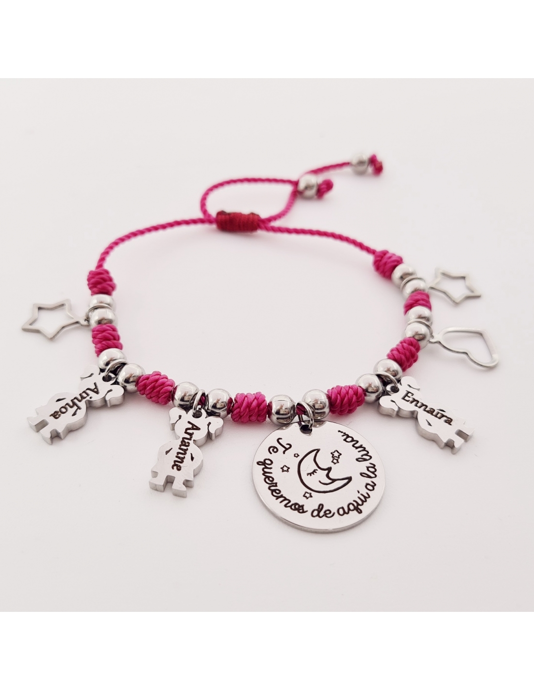 Pulsera modelos PETITOS-2 (Te queremos de aquí a la luna) con adornos de niños, en acero inoxidable, ajustable.