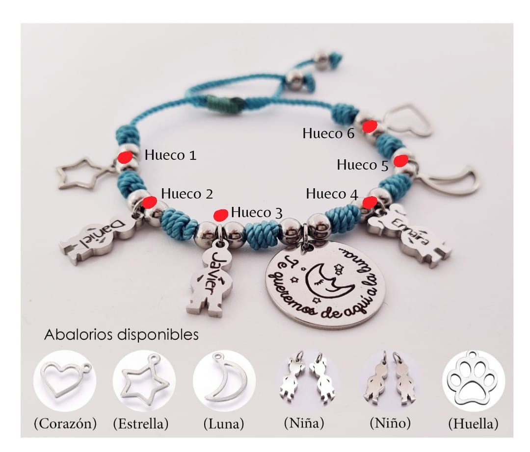 Rellena los campos de texto con el orden que quieras, nosotros montaremos la pulsera según...