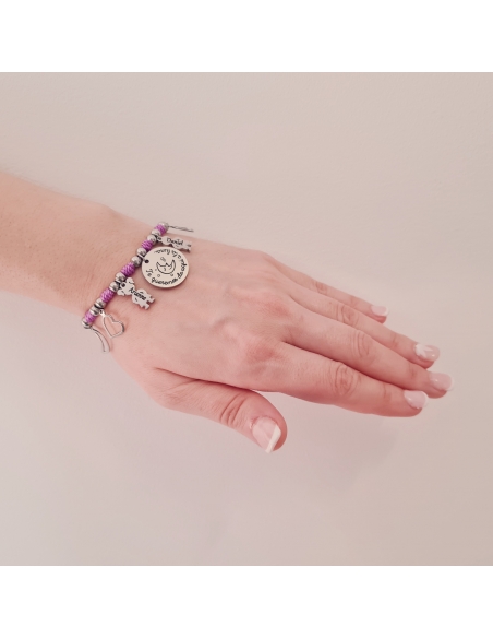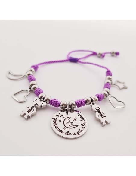 Pulsera modelos PETITOS-2 (Te queremos de aquí a la luna) con adornos de niños, en acero inoxidable, ajustable.