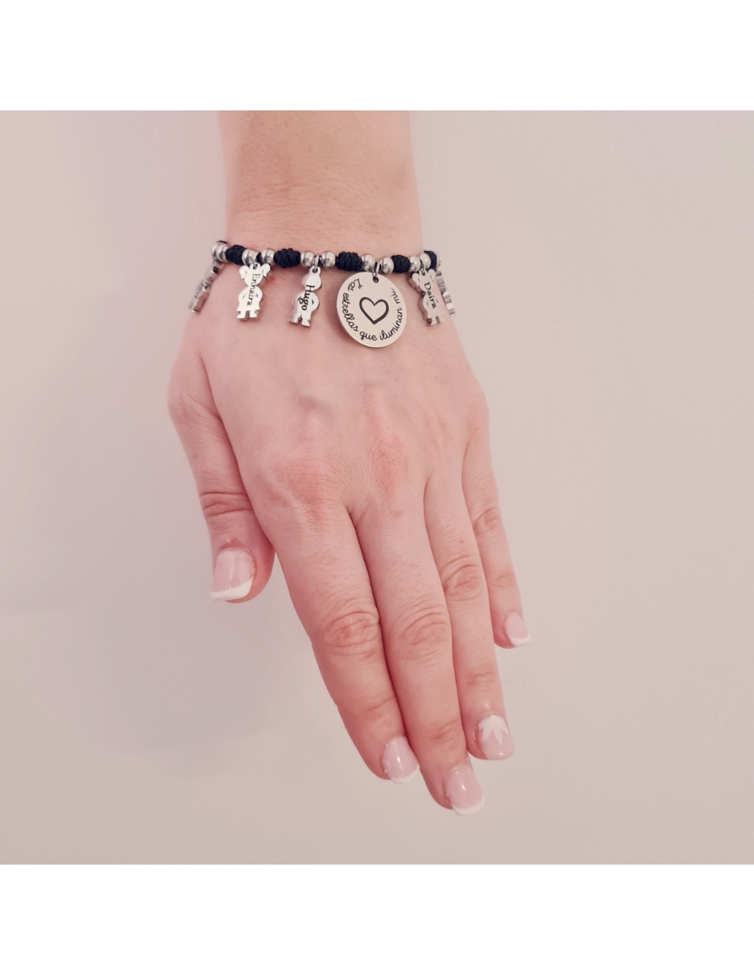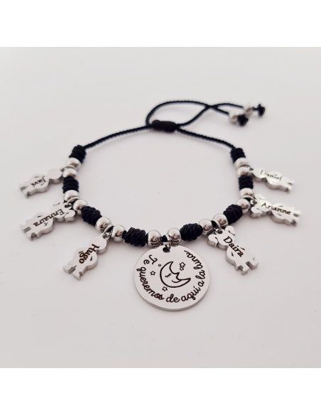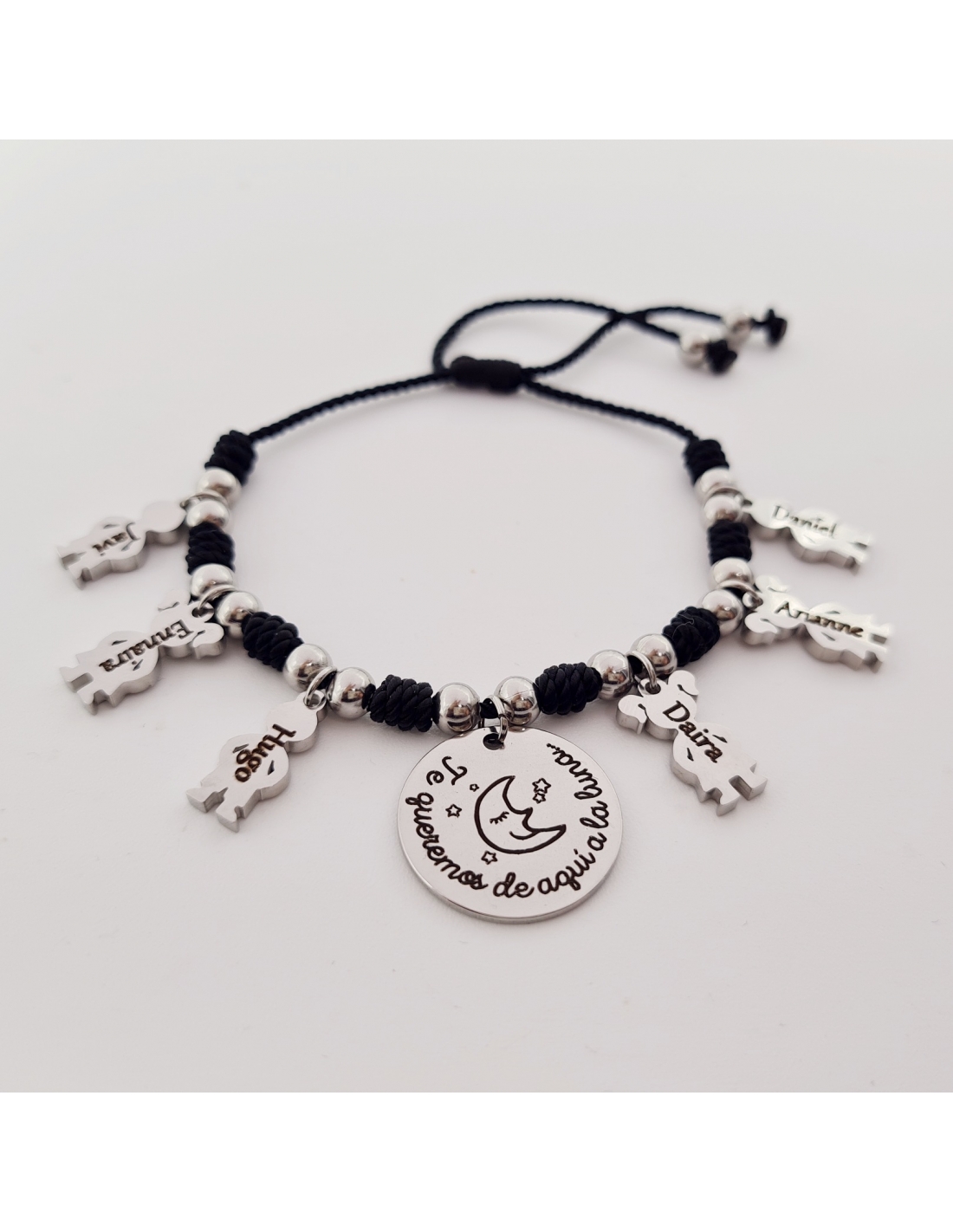 Pulsera modelos PETITOS-2 (Te queremos de aquí a la luna) con adornos de niños, en acero inoxidable, ajustable.