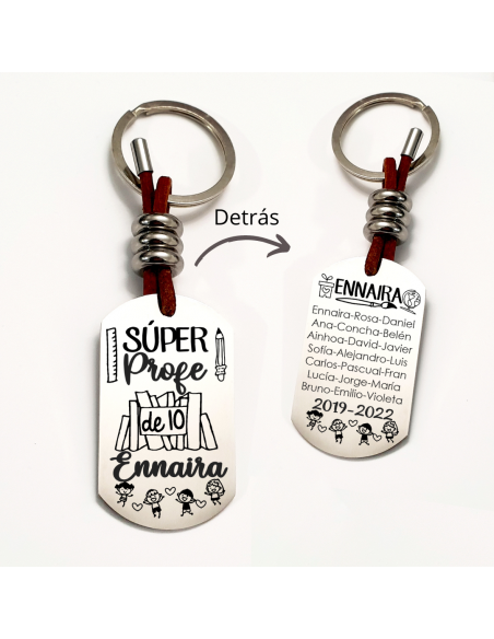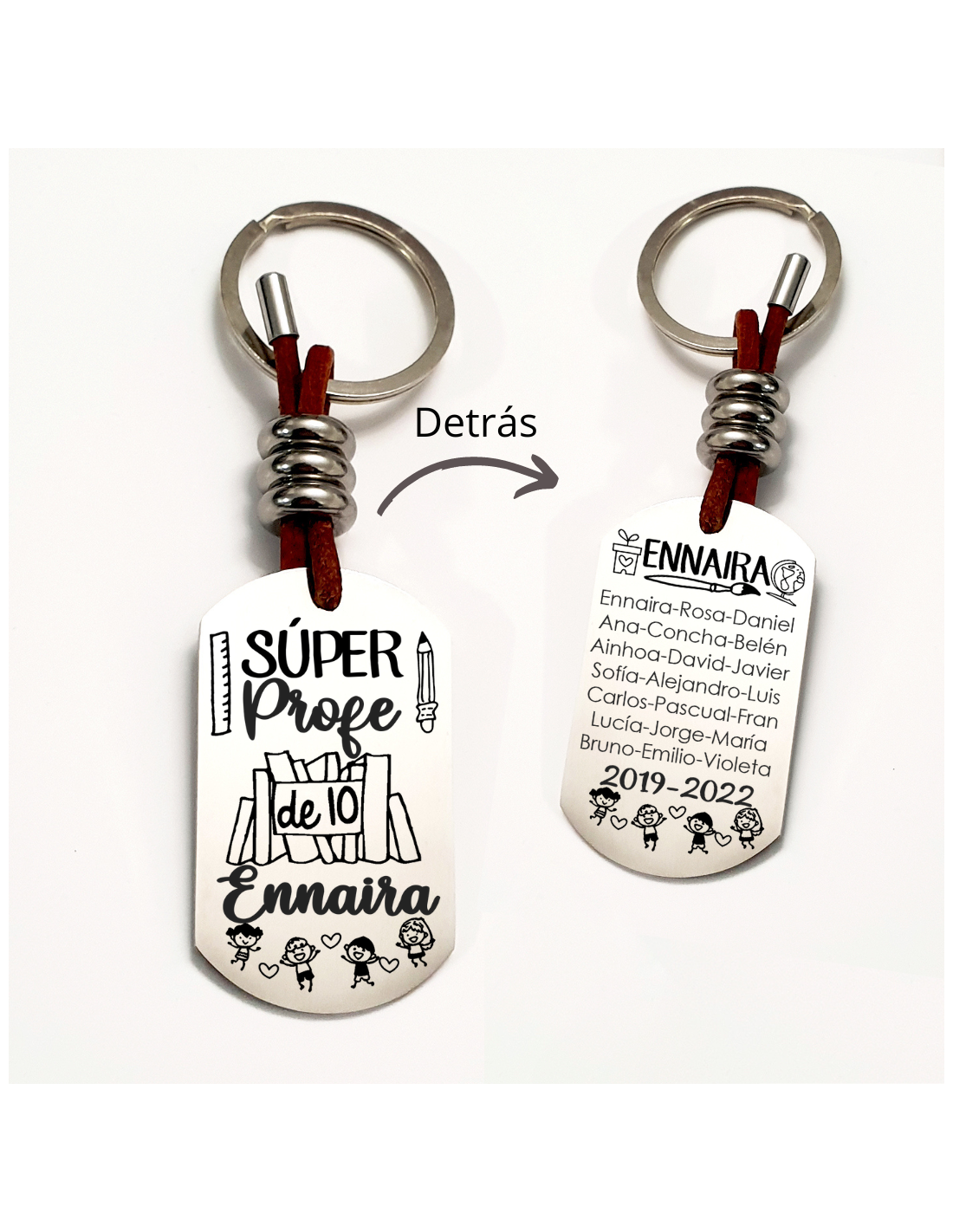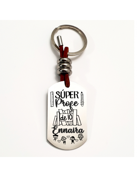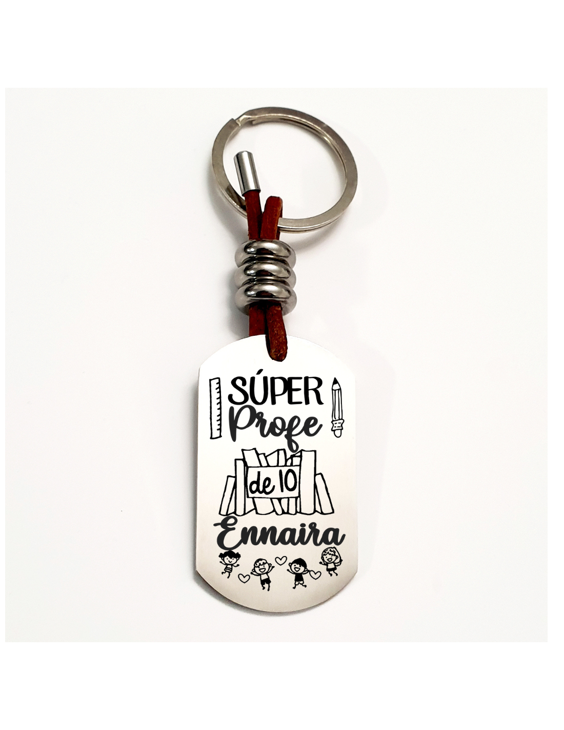 Llavero ADVENTURE, con frase (super profe de 10 y el nombre del profe).