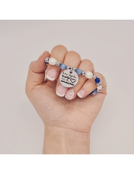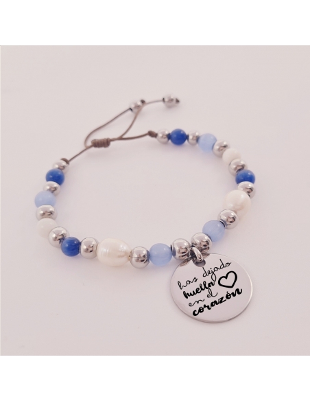 Recomendamos no mojar la pulsera, para mantener el brillo de la perla, evitar el deterioro de la goma y conservando el brillo del acero.