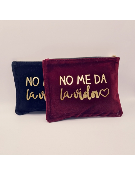 Neceser terciopelo, no me da la vida, medidas 22,5x17,5cm (1pc).