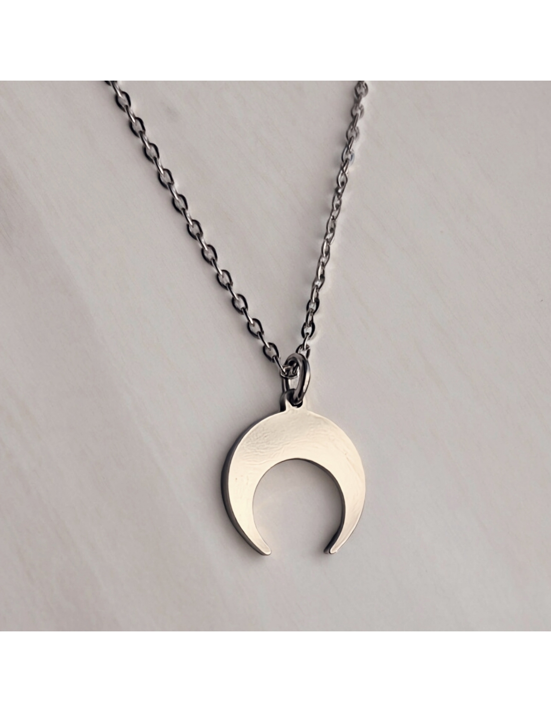 No sabemos porque, pero la Luna maravilla y encanta aquel que la observa... nos atrae...nos encandila, perdemos la noción del tiempo, en ese hechizo de atracción, nos otorga paz, tranquilidad y serenidad, posee una gran energía, es la causante de las mareas, qué otorgan un equilibrio perfecto en la naturaleza. Un amuleto de luna invertida, ayuda a atraer las buenas energías a nuestra vida y a disolver las negativas que nos rodean, nos otorga paz, serenidad y tranquilidad, además nos ayuda a estar en equilibrio perfecto con nuestro entorno.