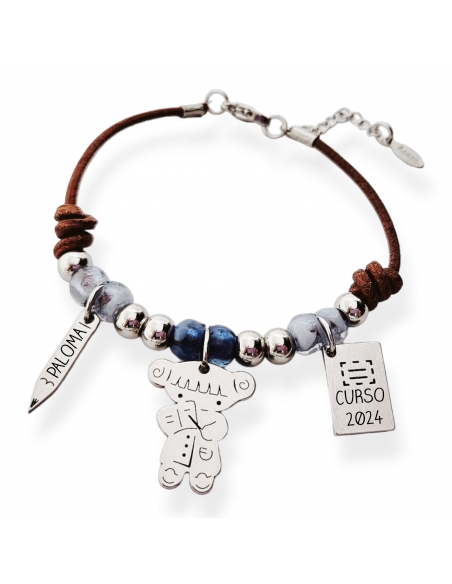 Puedes personalizar la pulsera con el nombre del profesor en el lápiz y el curso en la libreta.
