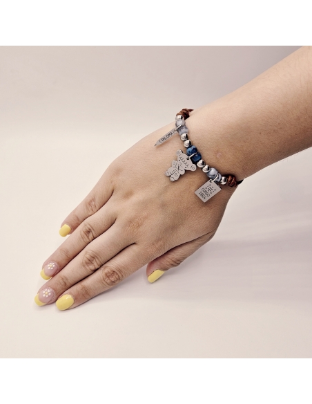 Este modelo es totalmente ajustable, abarca las tallas desde los 15cm (equivalente a una talla pequeña) hasta los 20cm de muñeca (equivalente a una talla grande). La pulsera tiene una extensión de cadena, a la cual puedes engarzar el mosquetón en caso de ser muy pequeña, llegando hasta la talla más grande.