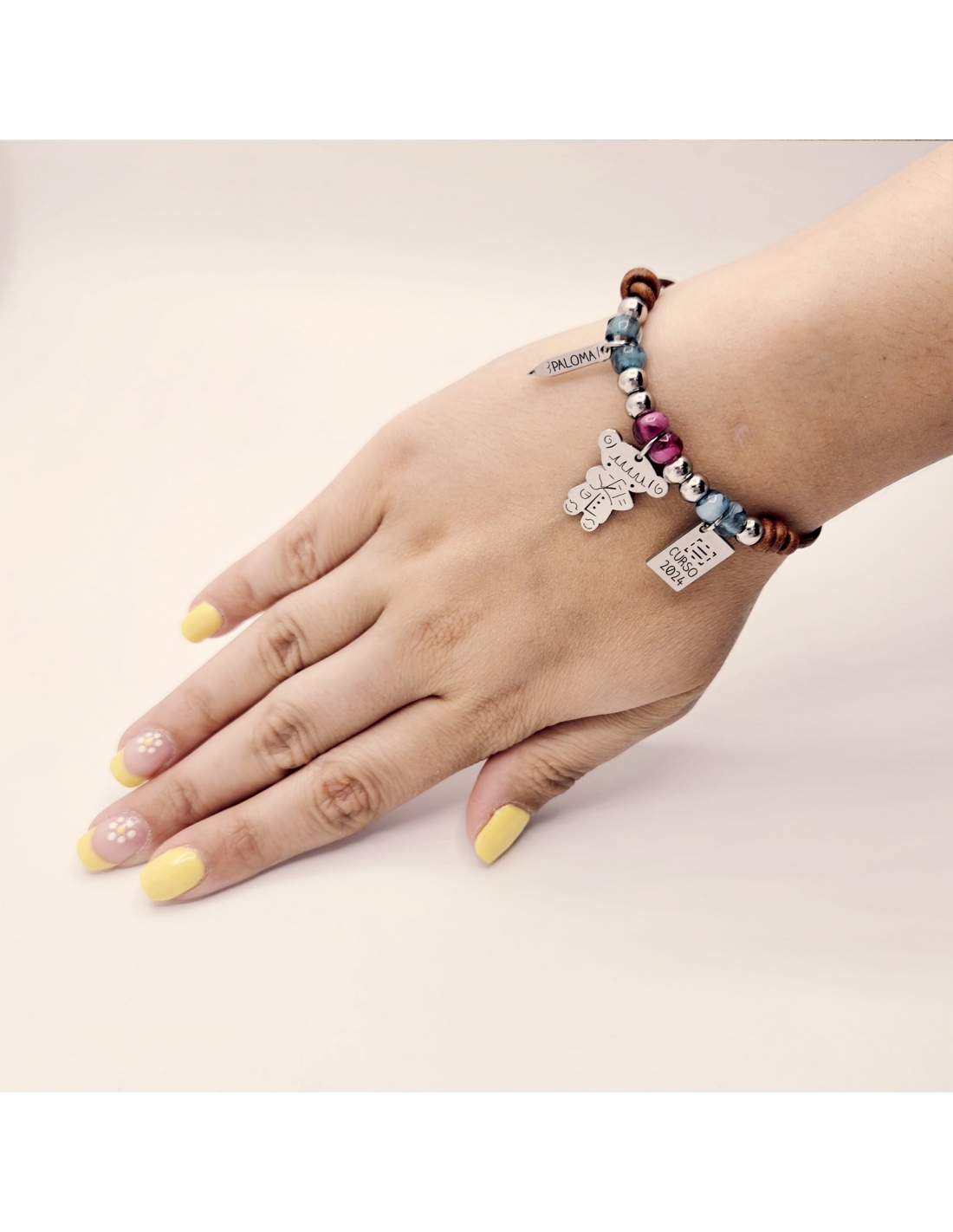 Puedes personalizar la pulsera con el nombre del profesor en el lápiz y el curso en la libreta.