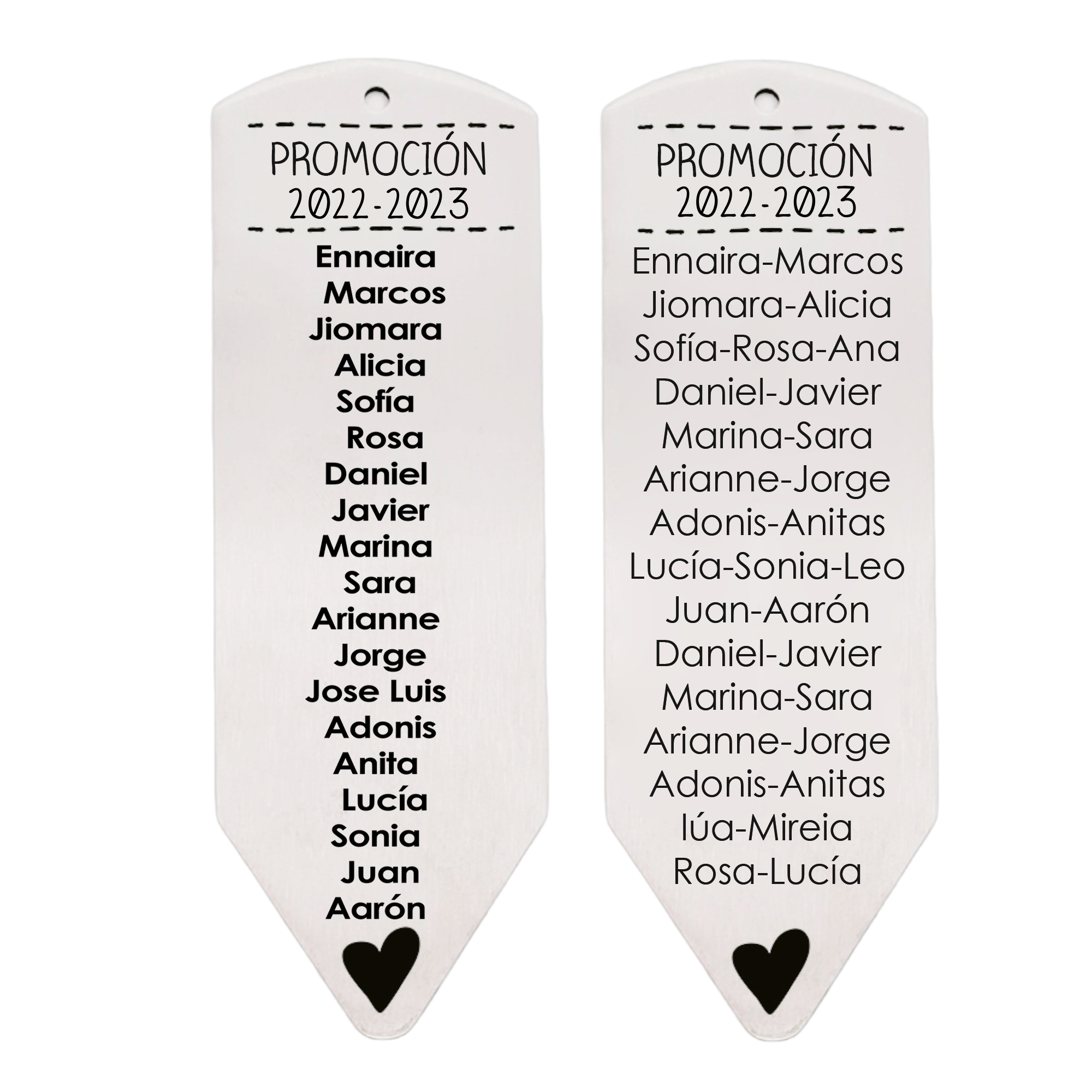 5- MARCAPÁGINAS: Un marcapáginas duradero con dedicatoria al profesor, los nombres de los niños y el curso.