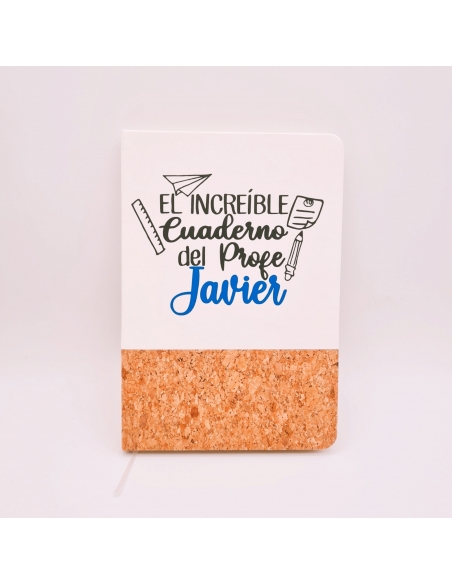 2- LIBRETA: Una elegante libreta con la frase "El increíble cuaderno del profesor (nombre del profesor)". Es perfecta para que el profesor tome notas, plasme ideas o realice seguimiento de su trabajo.