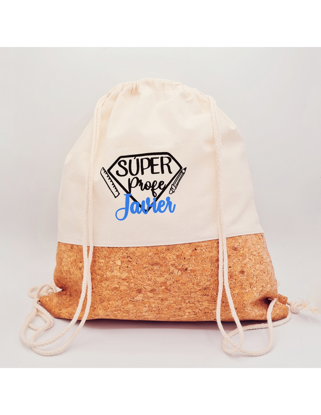 1- MOCHILA: Una mochila de diseño único con la frase "Súper Profe (nombre del profesor)". Es ideal para llevar libros, material escolar u otros objetos necesarios para su labor educativa.