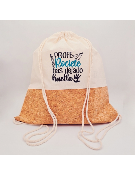 1-Mochila: Una mochila de diseño único con la frase; Profe (nombre del profesor) has dejado huella. . Es ideal para llevar libros, material escolar u otros objetos necesarios para su labor educativa.
