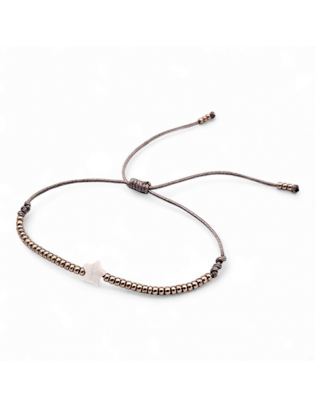Preciosa pulsera ajustable con estrella de nácar. Incluye una tarjeta con el mensaje (Que todo lo bueno te siga, te encuentre y se quede contigo, y el resto pase de largo).