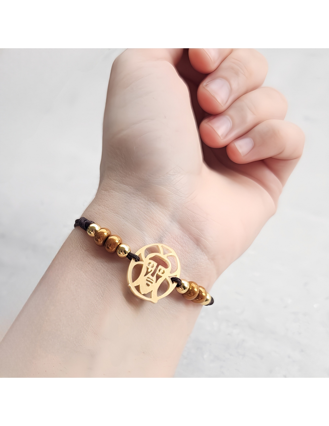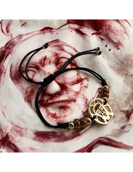 Pulsera montada en resina, acero inoxidable, cuerda y (la santa faz) metraquilato.