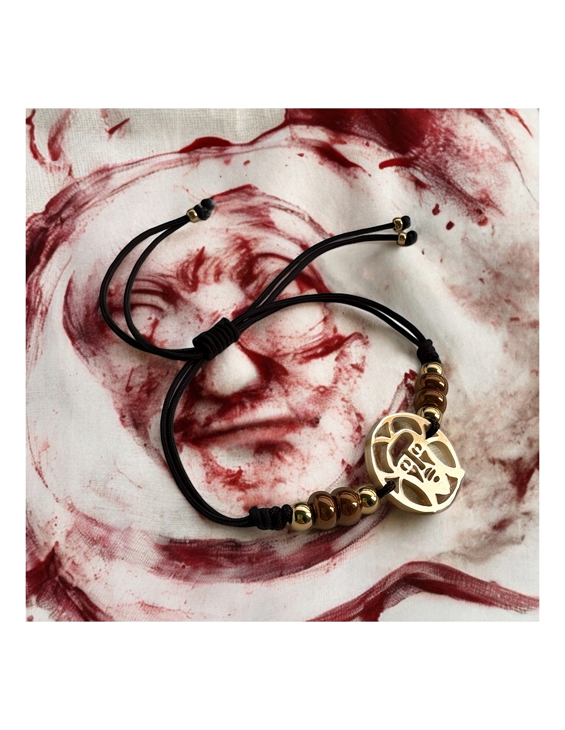 Pulsera de la Santa Faz, presentada en tarjeta con su historia, disponible en varios tonos.