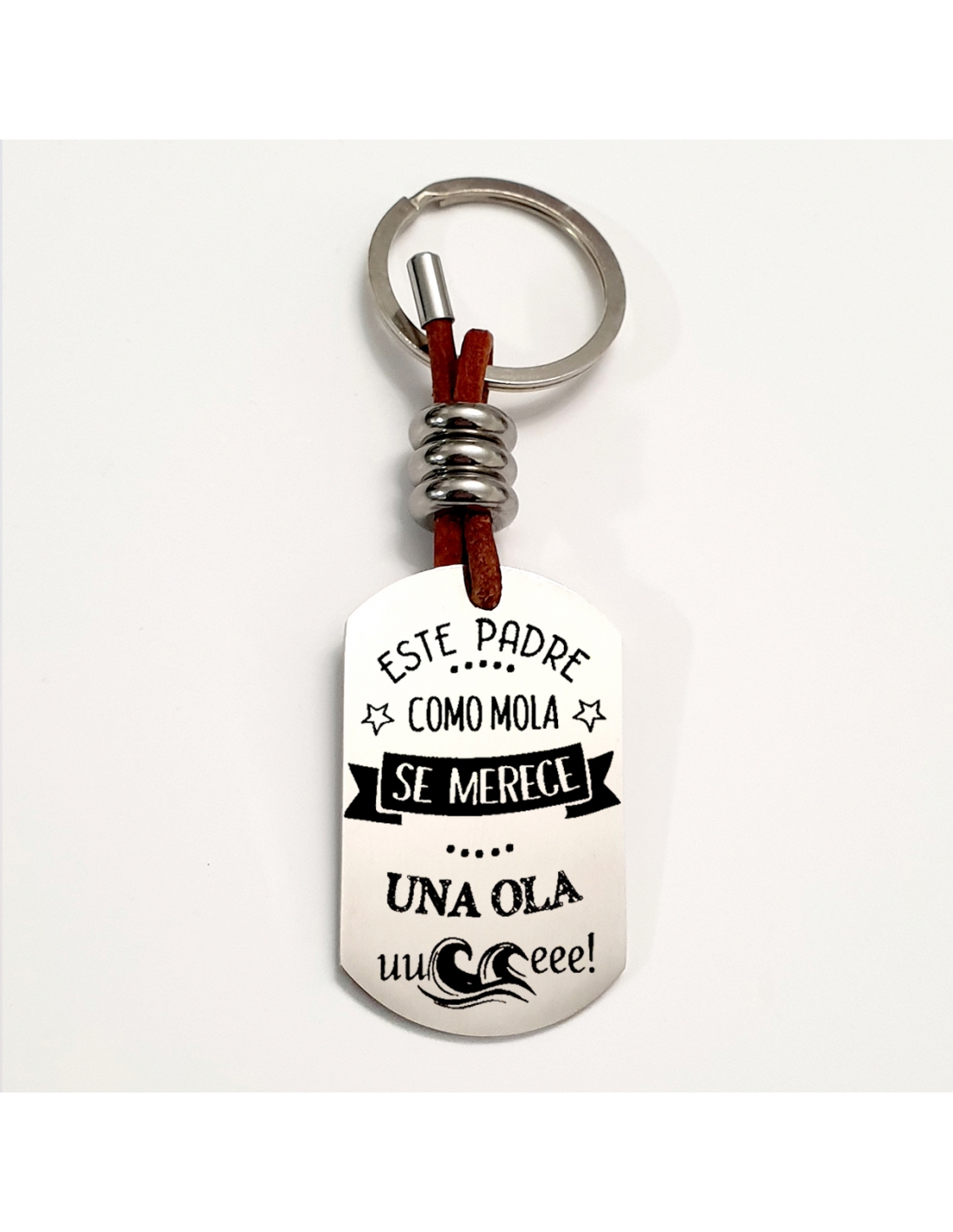 Llavero ADVENTURE, con frase (Ese padre como mola, se merece una ola).