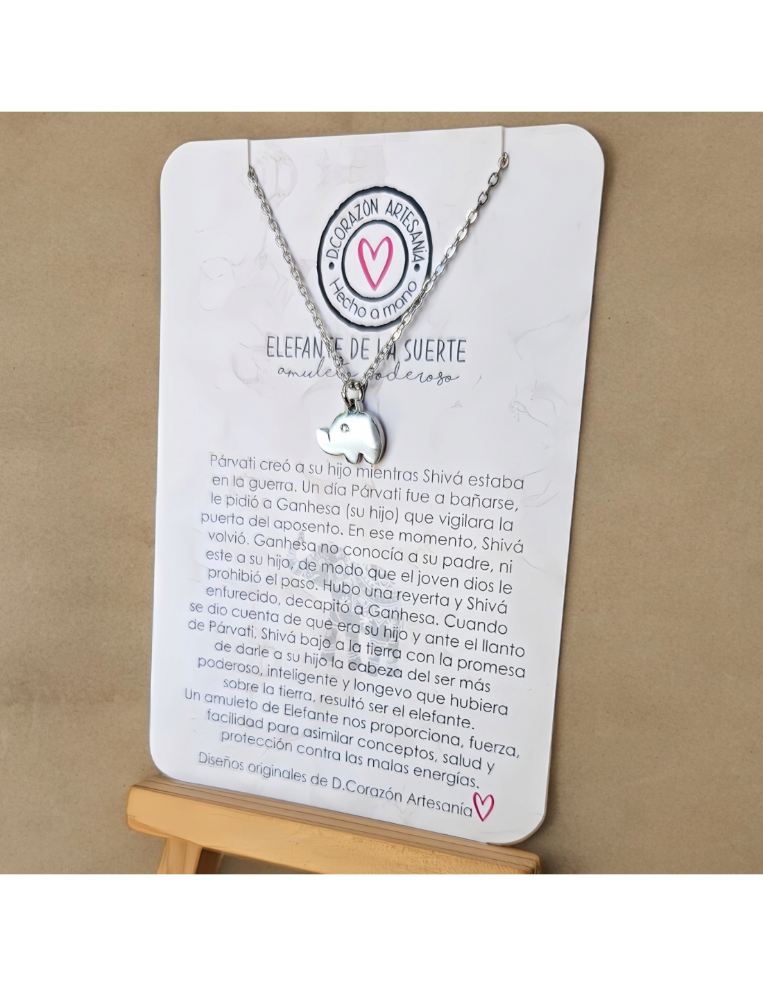 Precioso colgante de ELEFANTE incluye la tarjeta con su historia.