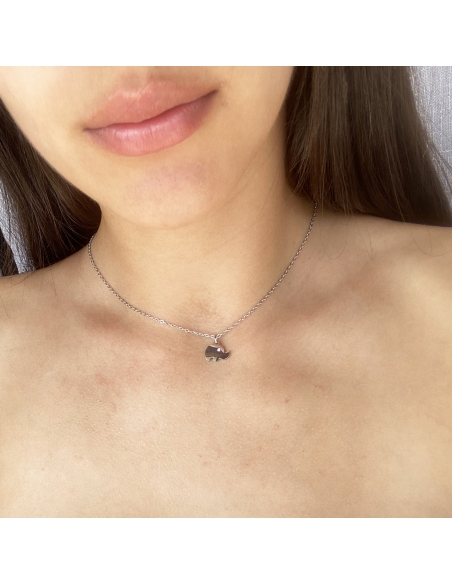Párvati creó a su hijo mientras Shivá estaba en la guerra. Un día Párvati fue a bañarse, le pidió a Ganhesa (su hijo) que vigilara la puerta del aposento. En ese momento, Shivá volvió. Ganhesa no conocía a su padre, ni este a su hijo, de modo que el joven dios le prohibió el paso. Hubo una reyerta y Shivá enfurecido, decapitó a Ganhesa. Cuando se dio cuenta de que era su hijo y ante el llanto de Párvati, Shivá bajo a la tierra con la promesa de darle a su hijo la cabeza del ser más poderoso, inteligente y longevo que hubiera sobre la tierra, resultó ser el elefante. Un amuleto de Elefante nos proporciona, fuerza, facilidad para asimilar conceptos, salud y protección contra las malas energías. El colgante es de acero inoxidable 316-L no produce alergias, resistente al agua.