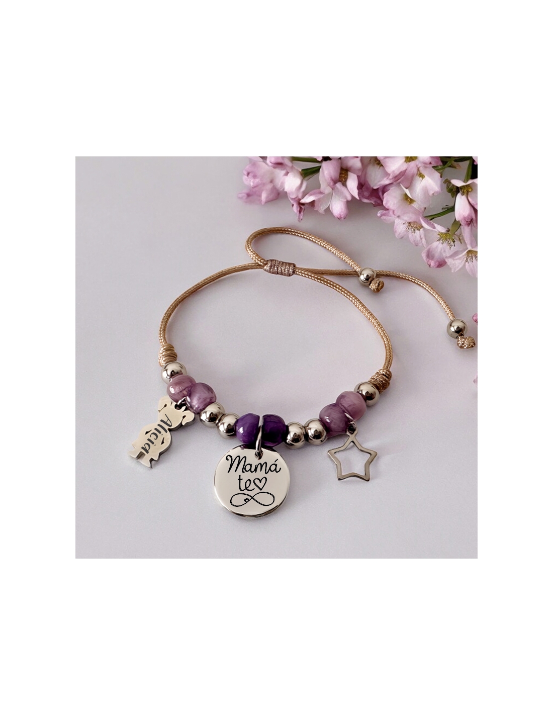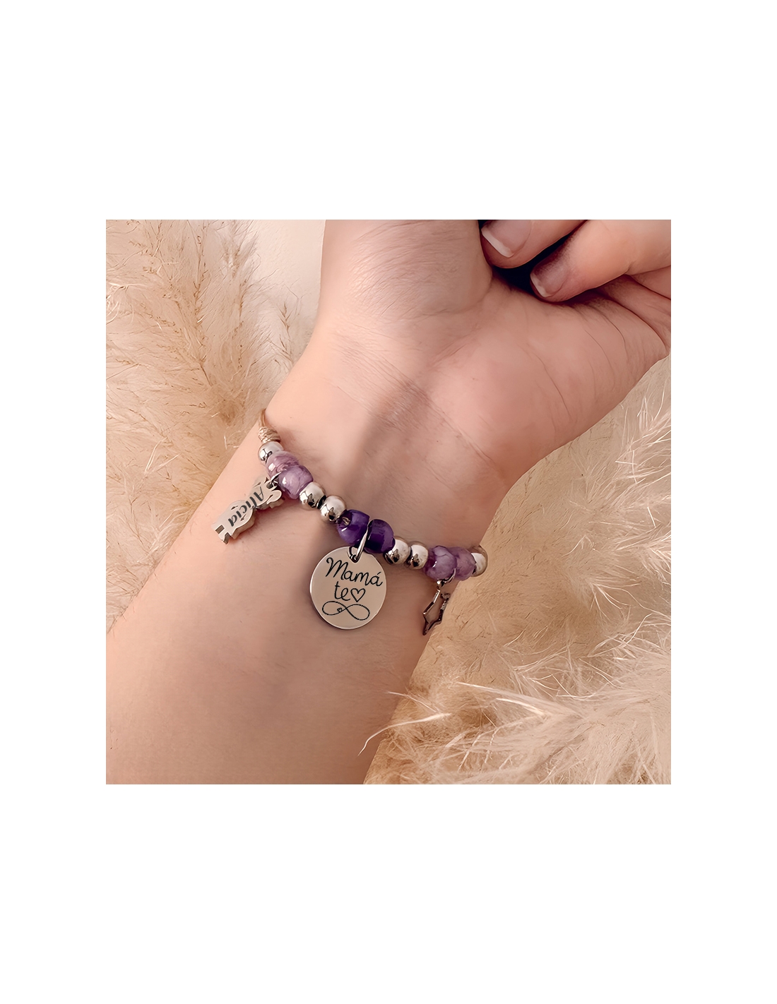 PULSERA MODELO VIVA con frase Mamá/Abuela te (corazón) hasta el (infinito).