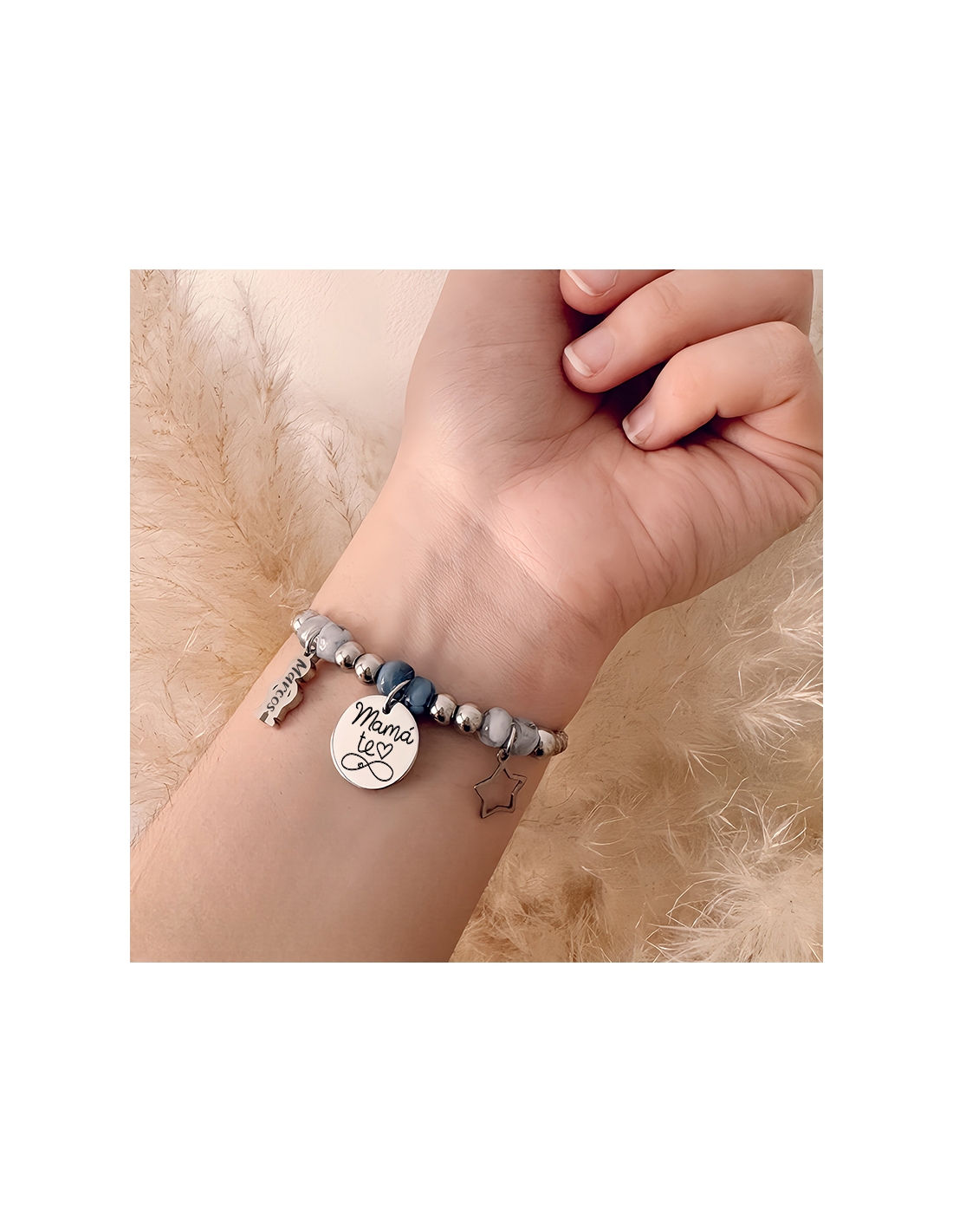 PULSERA MODELO VIVA con frase Mamá/Abuela te (corazón) hasta el (infinito).
