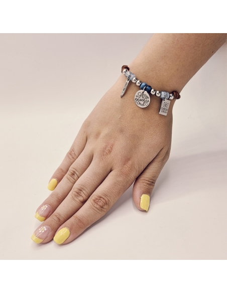 Este modelo es totalmente ajustable, abarca las tallas desde los 15cm (equivalente a una talla pequeña) hasta los 20cm de muñeca (equivalente a una talla grande). La pulsera tiene una extensión de cadena, a la cual puedes engarzar el mosquetón en caso de ser muy pequeña, llegando hasta la talla más grande.