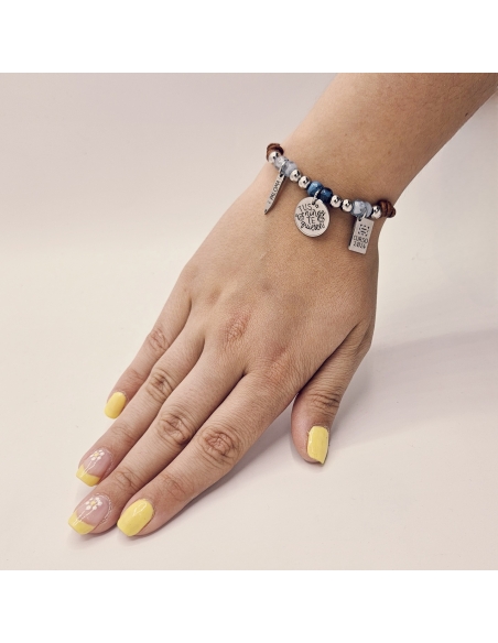 Este modelo es totalmente ajustable, abarca las tallas desde los 15cm (equivalente a una talla pequeña) hasta los 20cm de muñeca (equivalente a una talla grande). La pulsera tiene una extensión de cadena, a la cual puedes engarzar el mosquetón en caso de ser muy pequeña, llegando hasta la talla más grande.