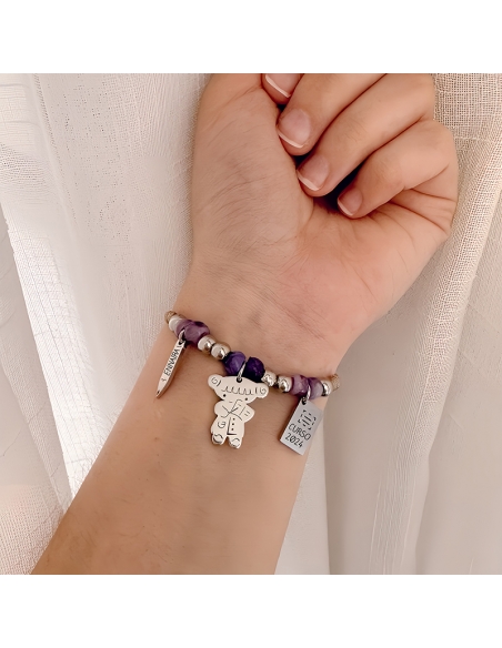 Pulsera con muñeca PROFESORA modelo VIVA, con resinas de alta calidad, acabados en acero inoxidable, ajustable.