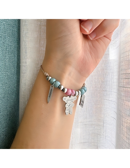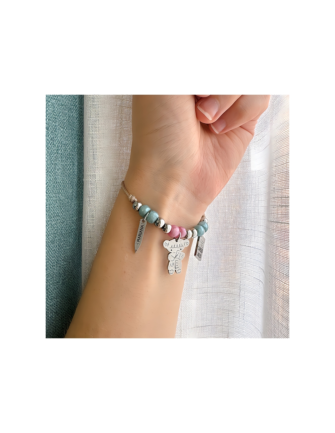 Pulsera con muñeca PROFESORA modelo VIVA, con resinas de alta calidad, acabados en acero inoxidable, ajustable.