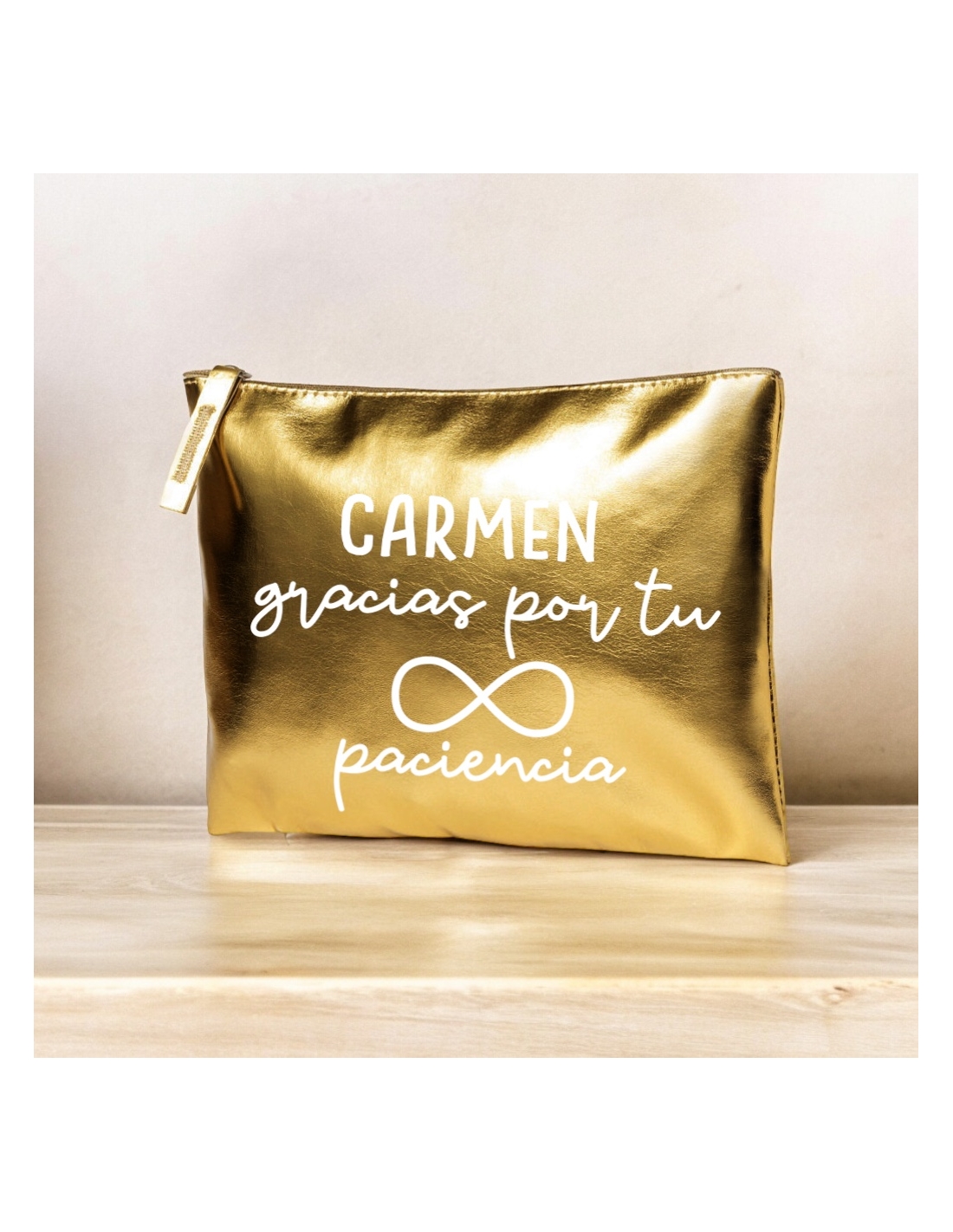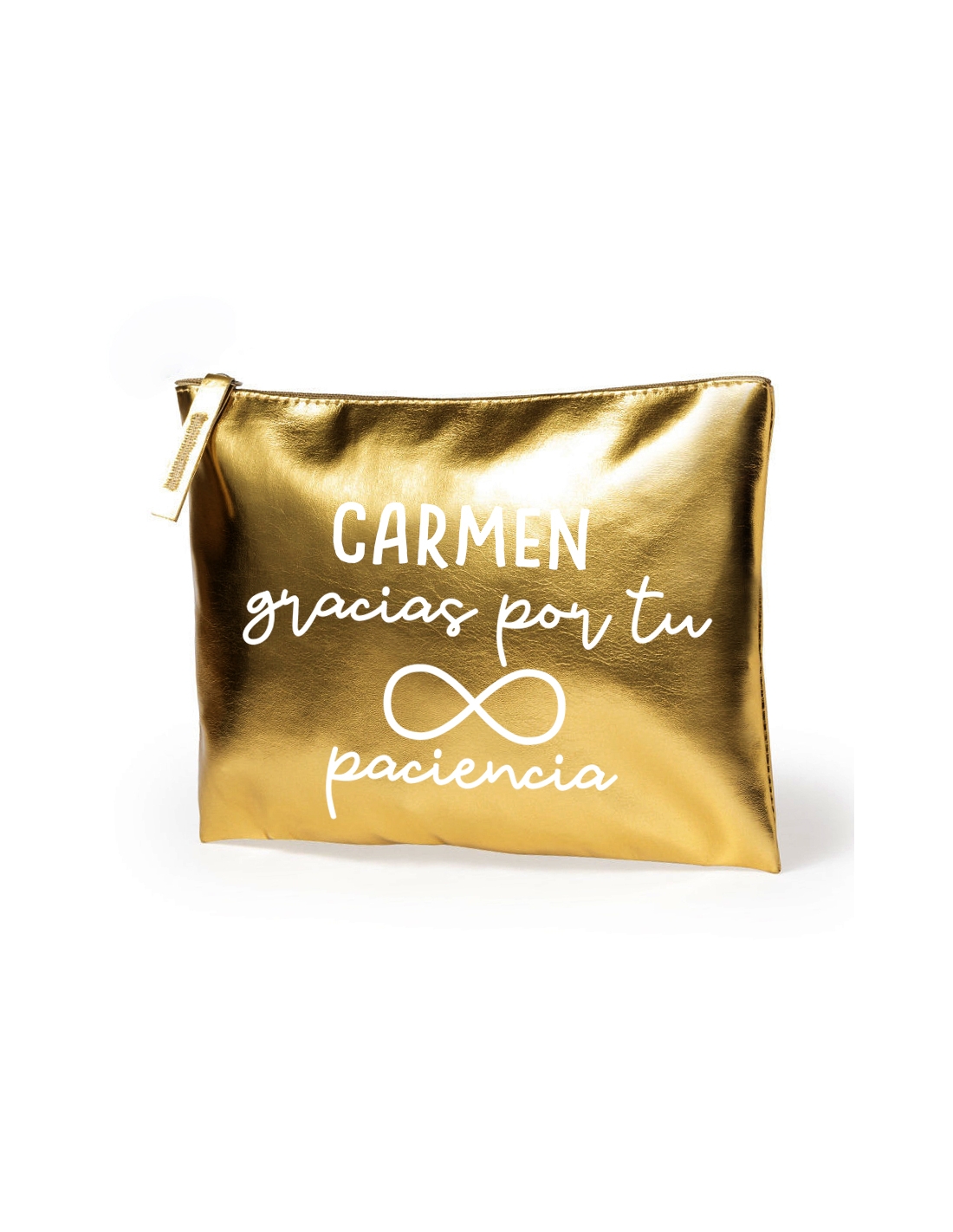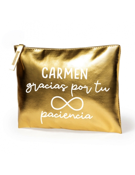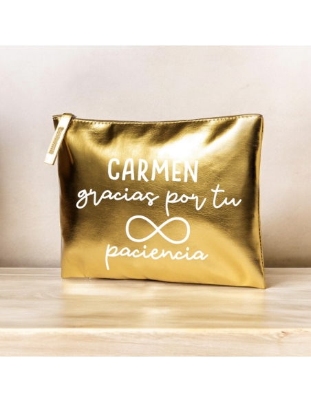 Neceser metalizado con frase (NOMBRE gracias por tu infinita paciencia), medida 21x15cm (1pc).