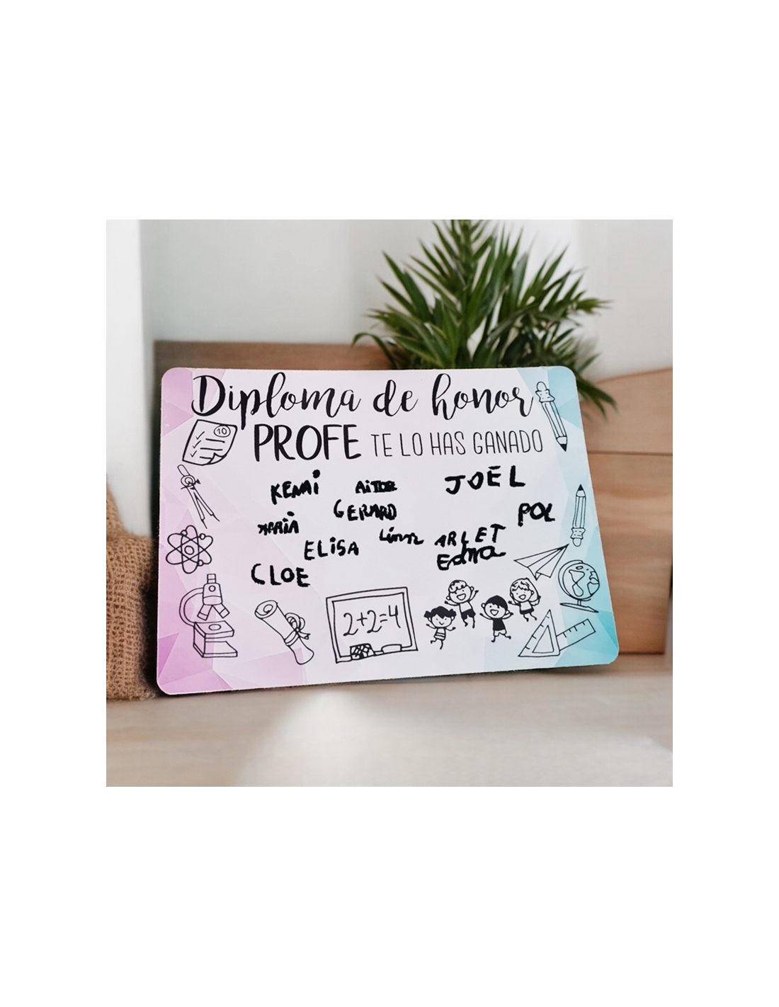 -Presentado en caja de madera, con diploma para que los niños escriban sus nombres y pin mejor profe.