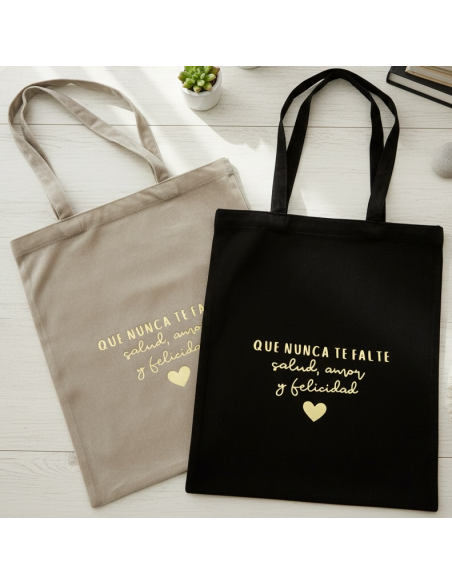Bolsa resistente, (que nunca te falte salud, amor y felicidad) tacto extra suave, fabricado en terciopelo (1pc).