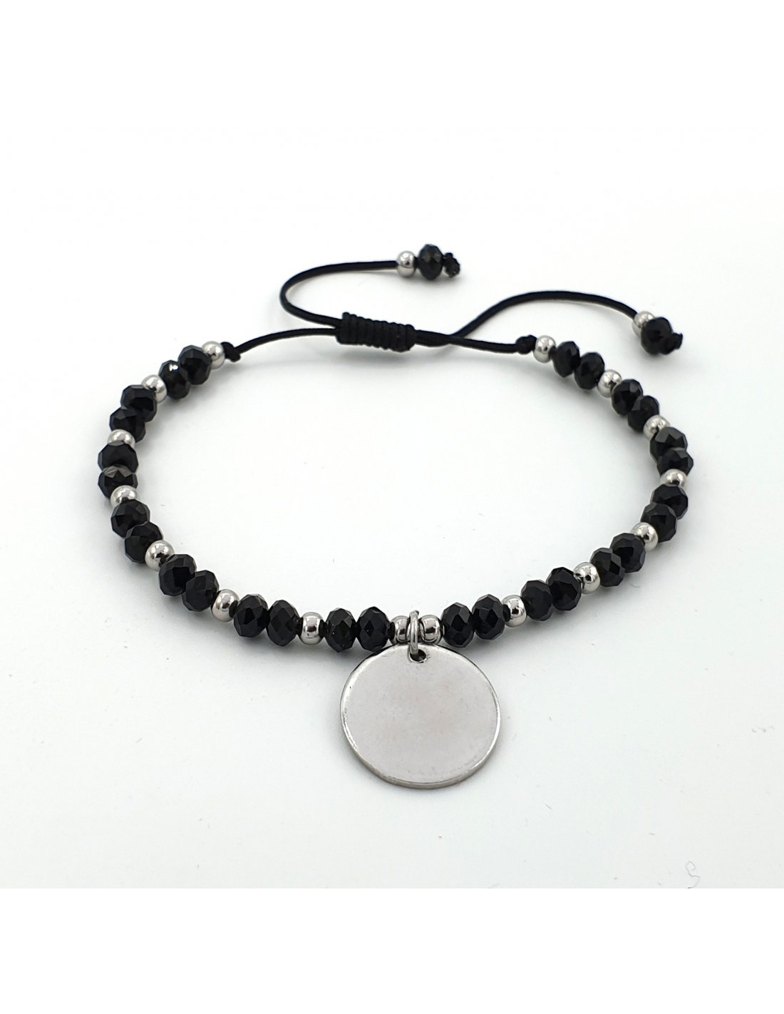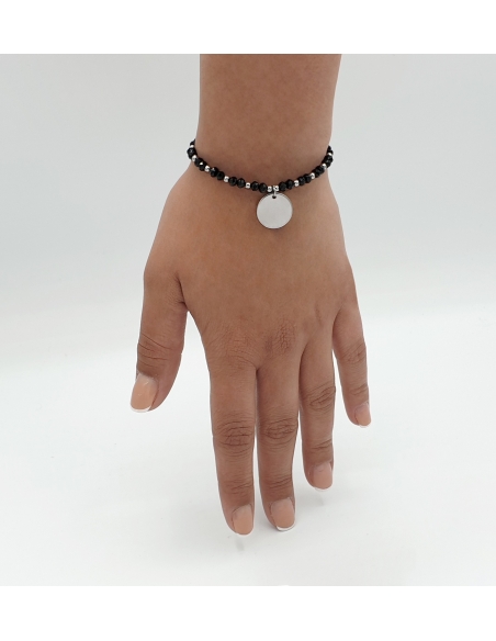 La placa de la pulsera mide 15mm, las bolas miden alternativamente 3mm y 4mm.