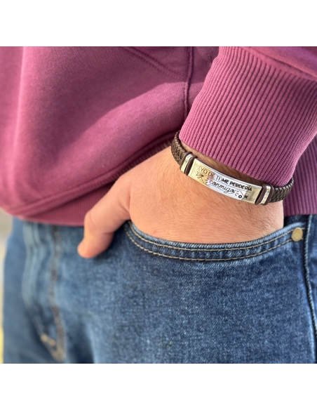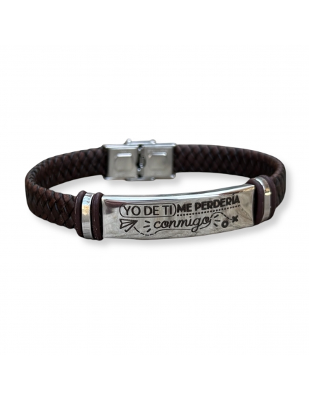 Pulsera de cuero con frase (Yo de ti, me perdería conmigo) Regalos de San Valentín.