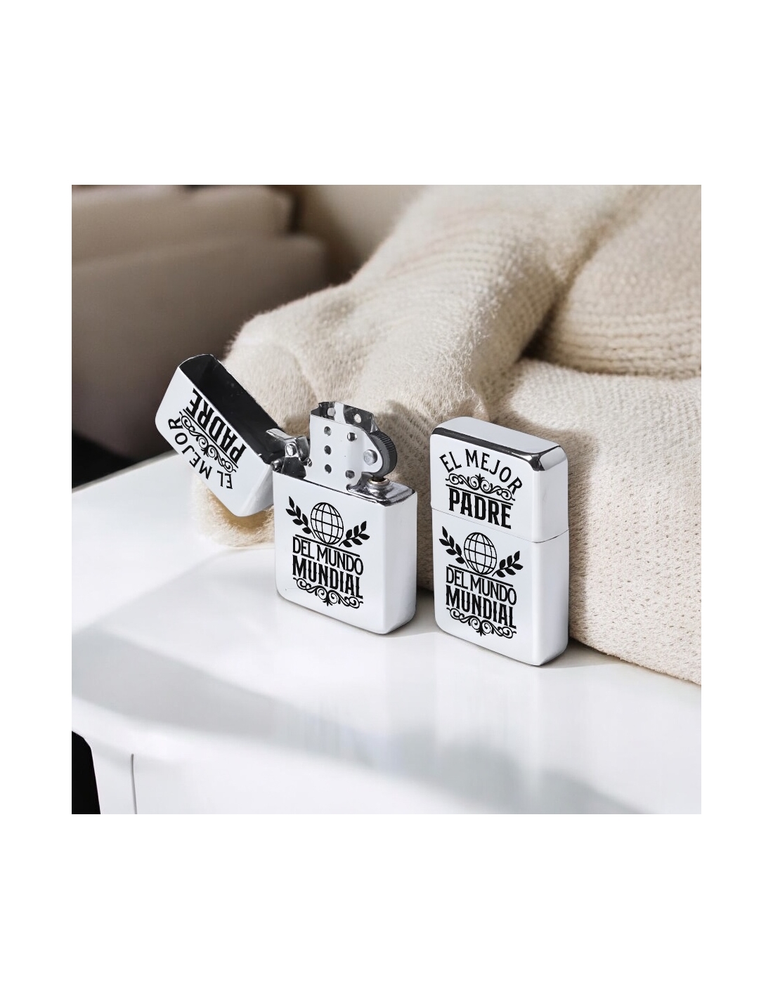 Mechero Tipo Zippo Personalizado, con frase (El mejor PADRE del mundo MUNDIAL). Regalo para Papá o Abuelo.