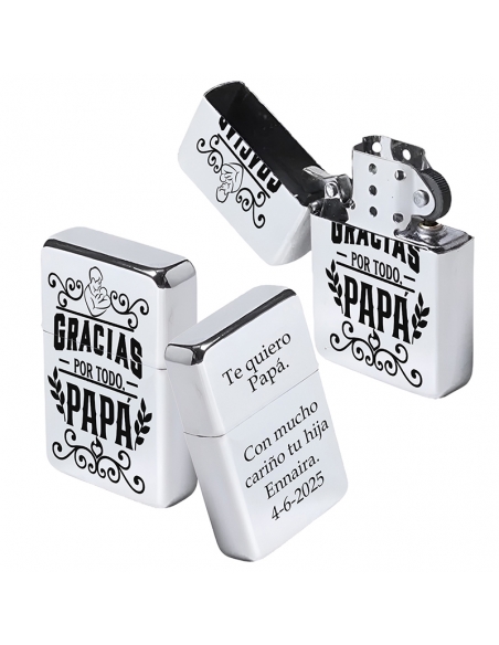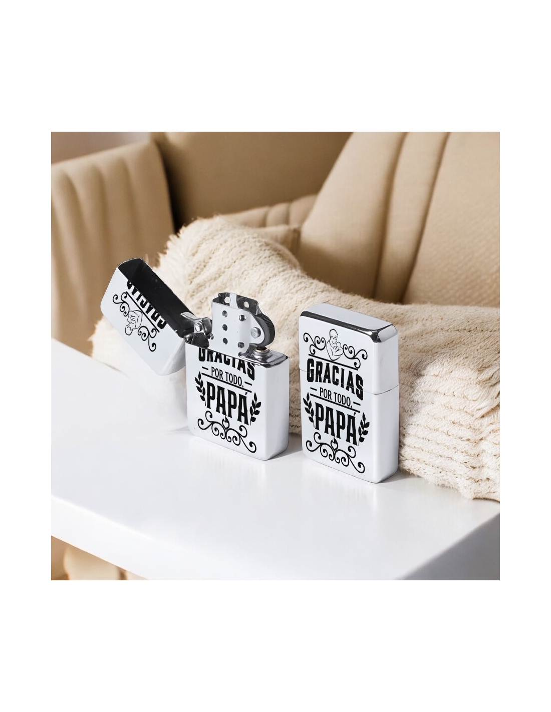 Mechero Tipo Zippo Personalizado, con frase (Gracias por todo PAPÁ). Regalo para Papá o Abuelo.