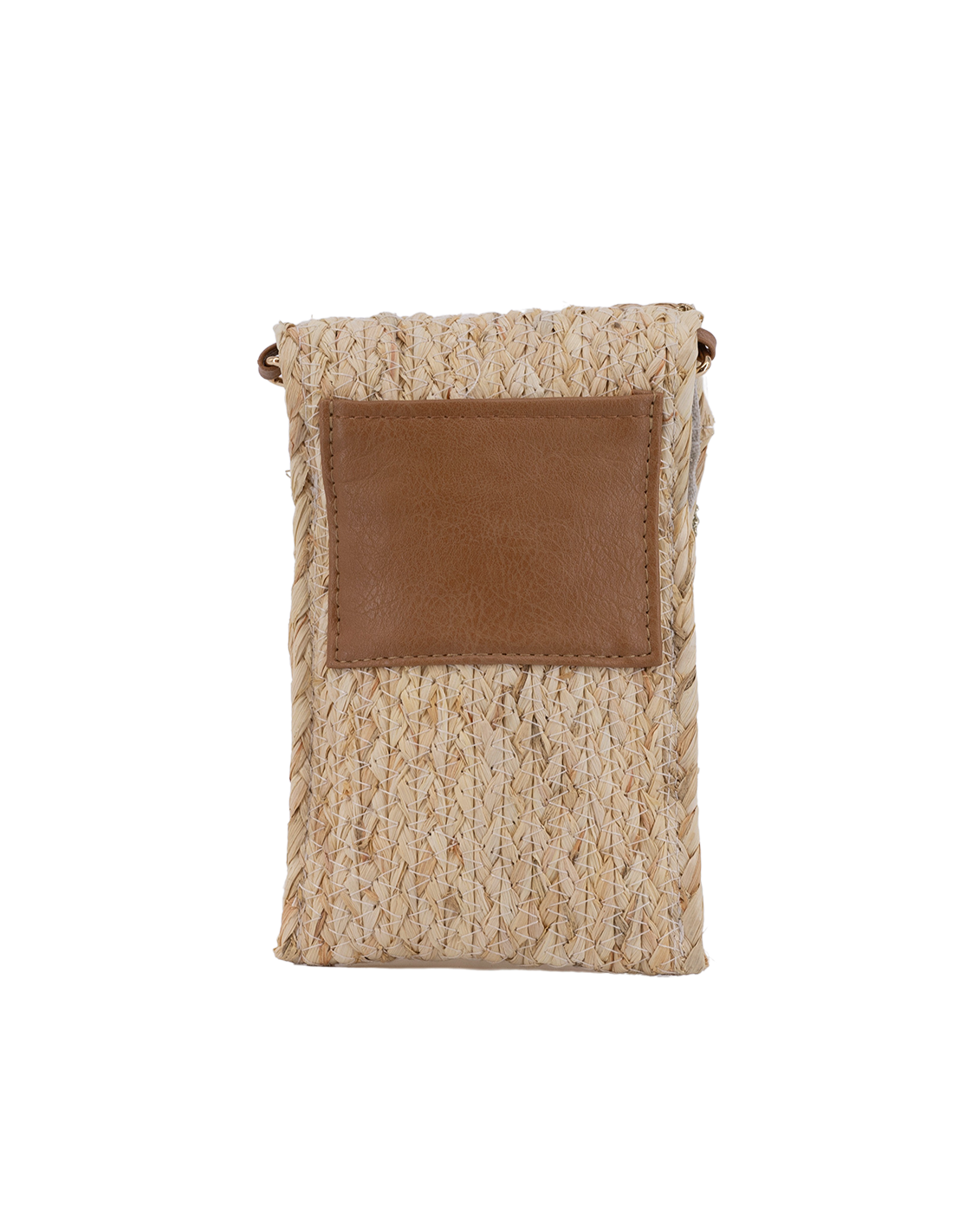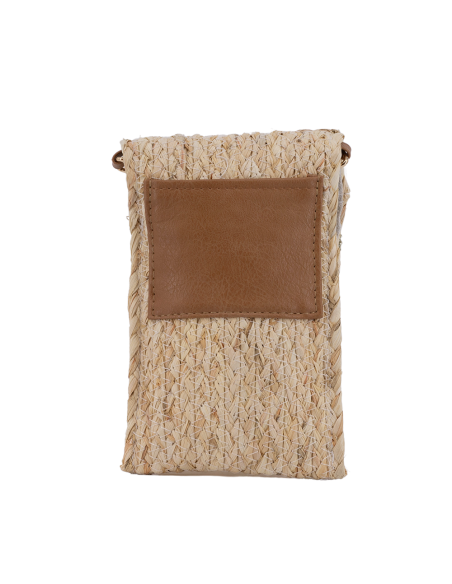 Bolso cartera fabricado en yute, con cierre de cremallera en yute, forro interior de algodón con bolsillo interior, asa estilo tote y asa bandolera de yute, trenzado con detalles espejo plateado.