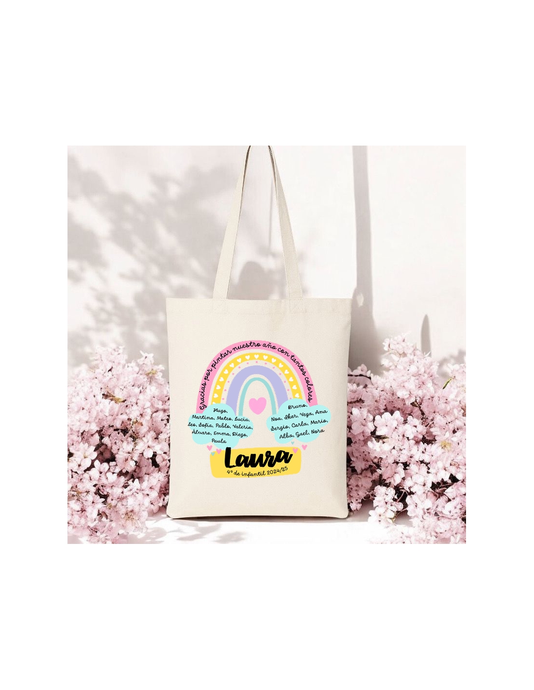 Hazle un regalo inolvidable a la profe con esta bolsa de algodón personalizada, ideal para fin de curso.
