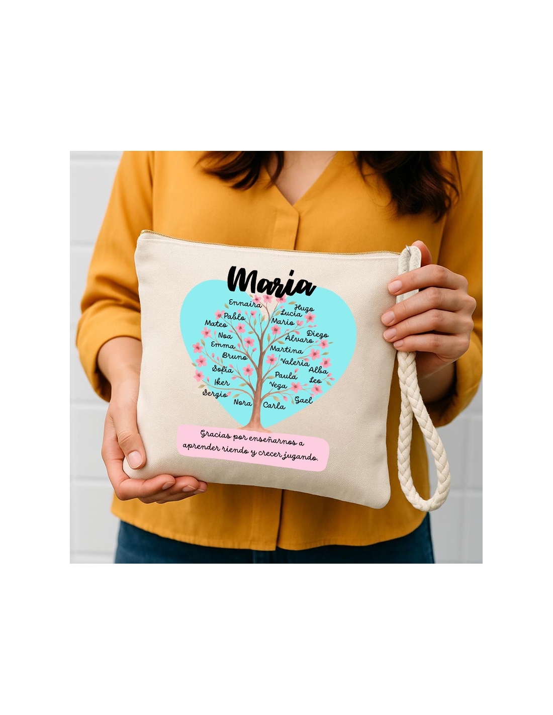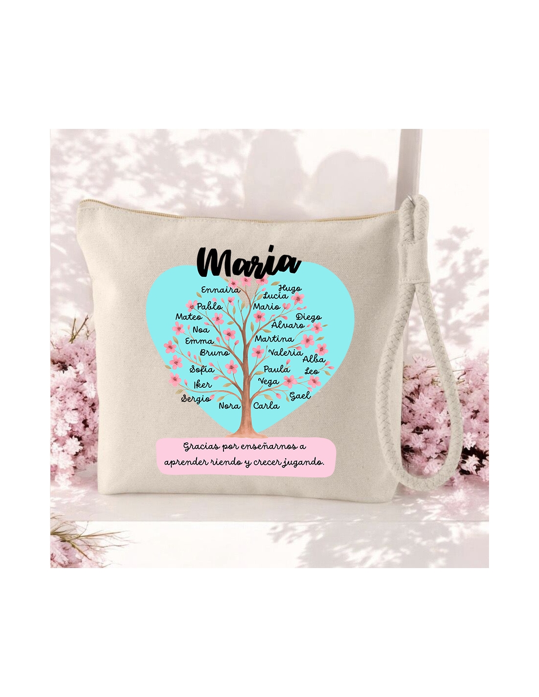 Compacto, bonito y lleno de significado, este neceser es perfecto como regalo de fin de curso para maestras de infantil o primaria.