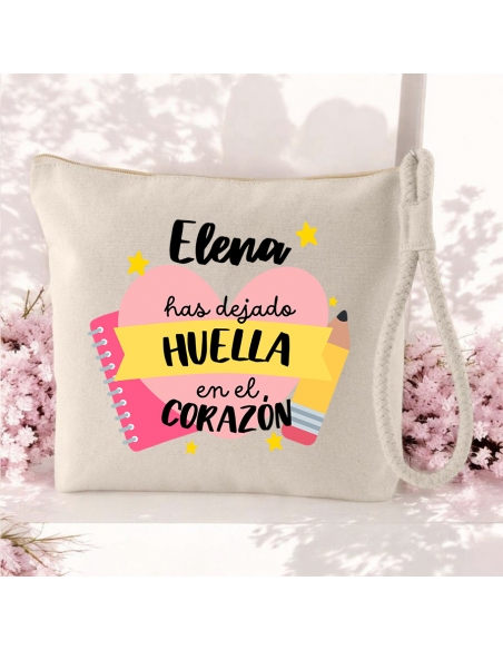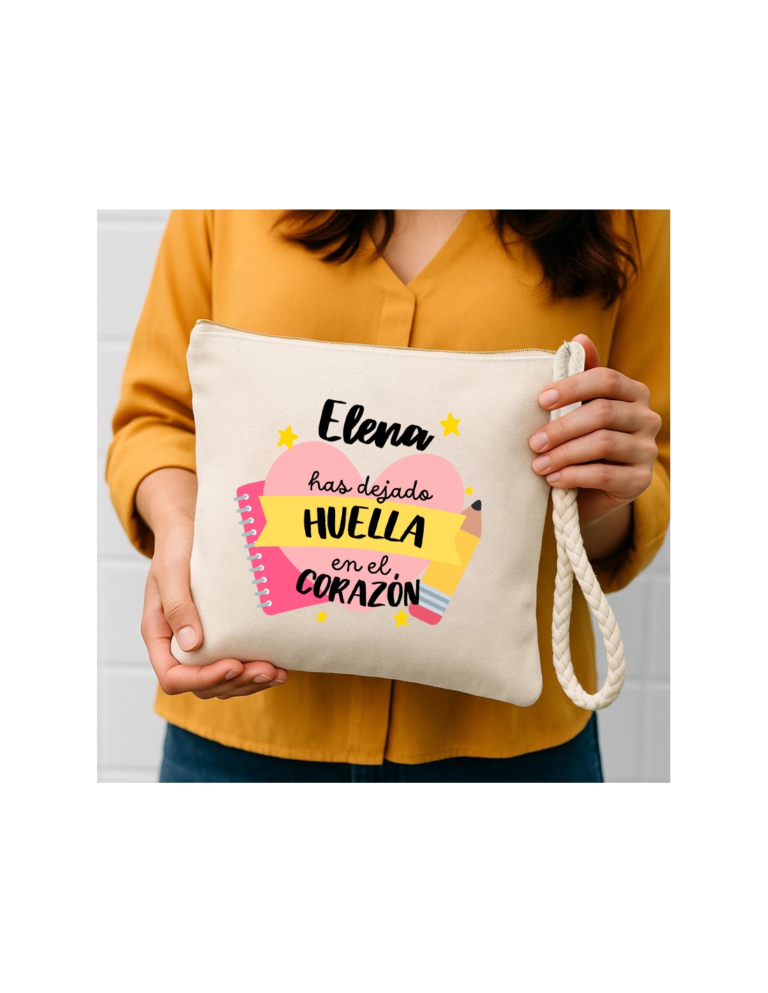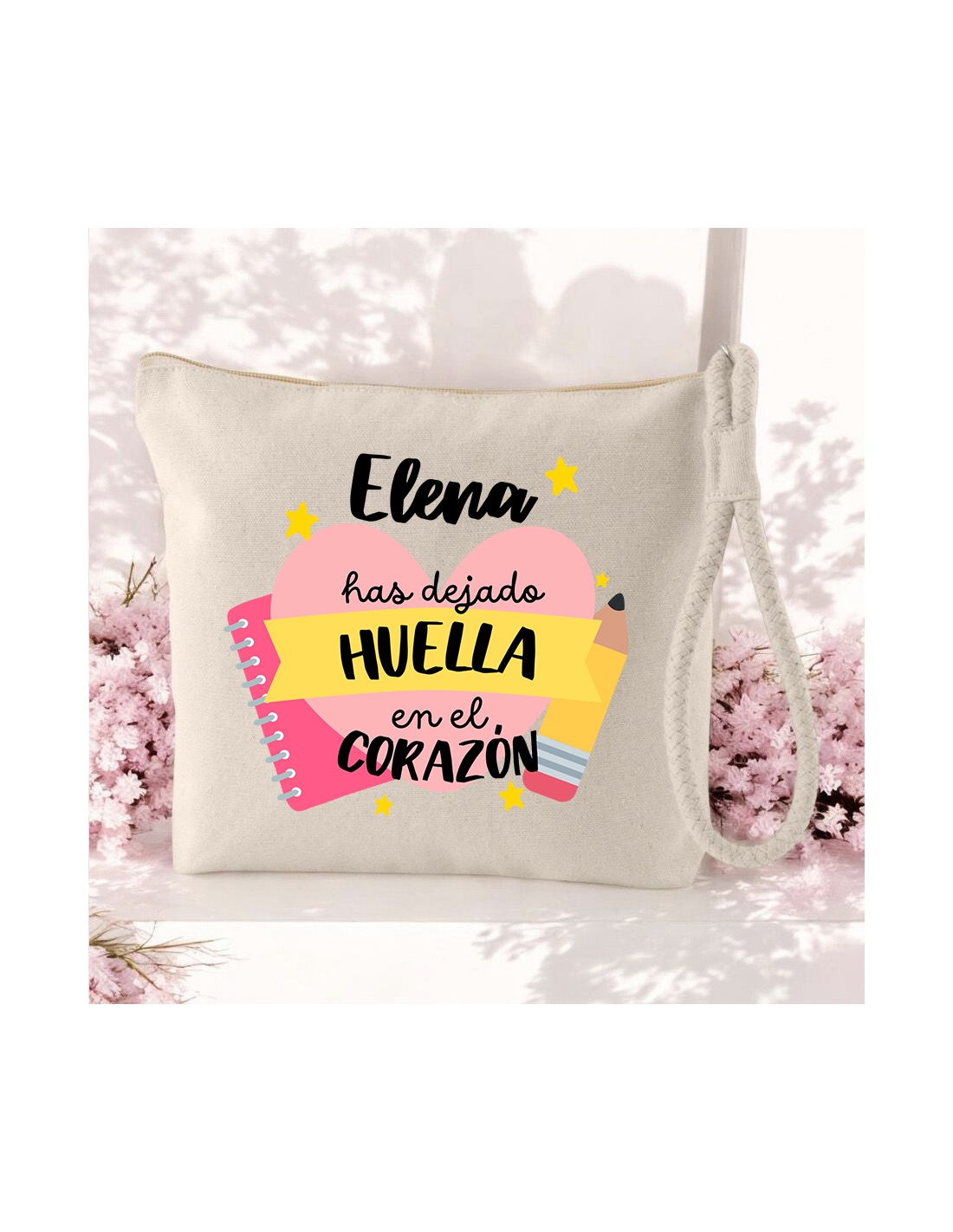 Neceser niños, personalizada con el nombre de la profesora, mensaje, has dejado huella en el corazón (1 pc).