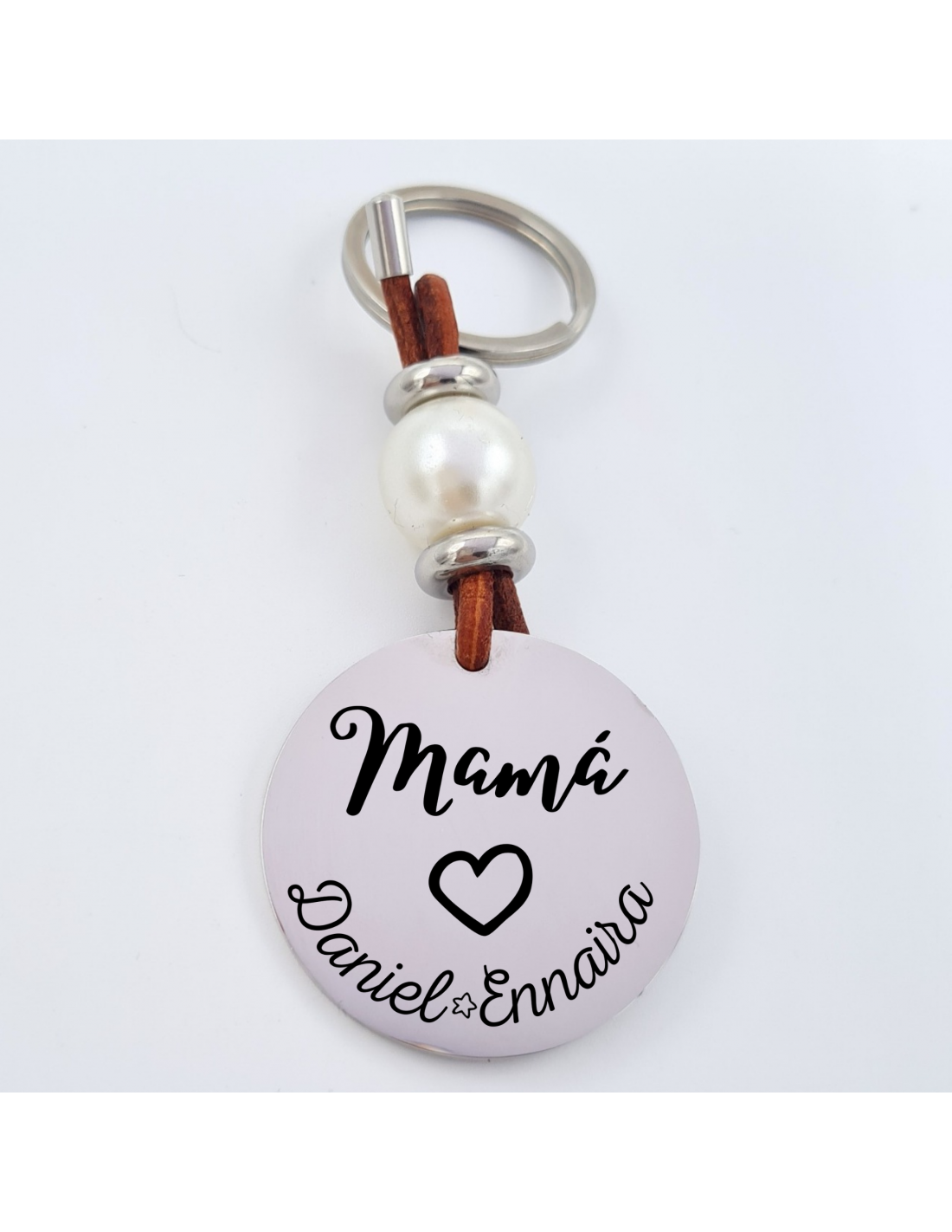 Llavero PERLI para mamá de uno a tres nombres, montado con perla de resina, acero inoxidable.