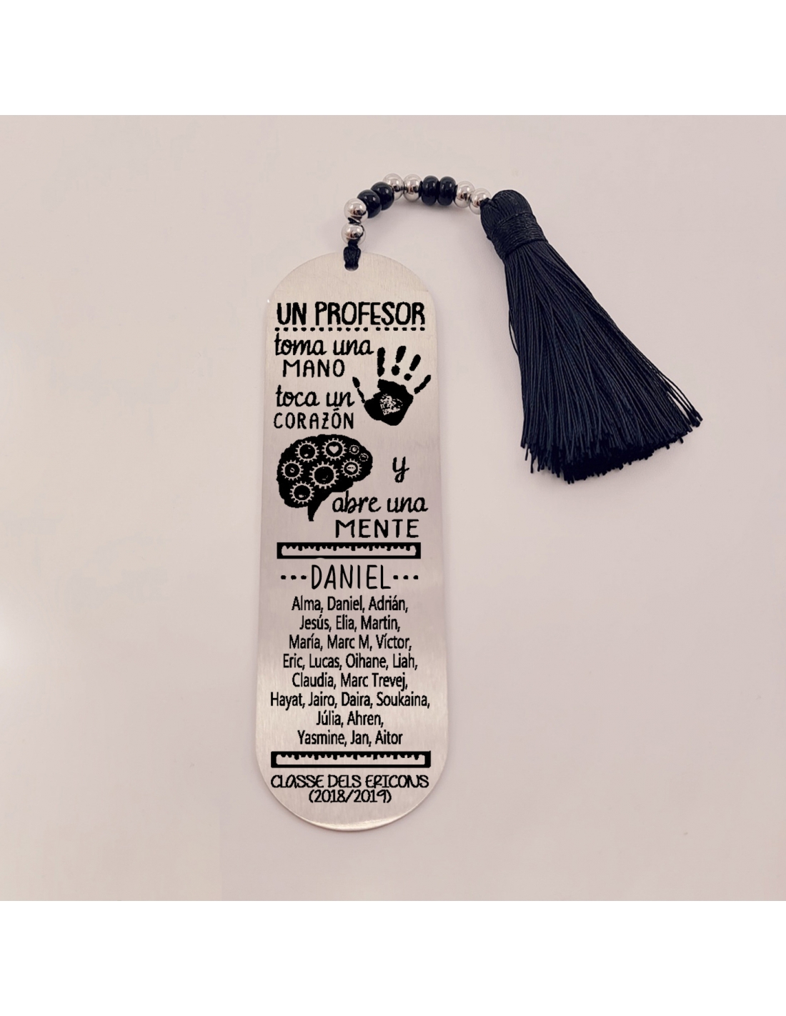 Recomendamos no mojar el marca páginas, manteniendo de este modo el brillo del acero y evitando el deterioro anticipado del algodón a modo de borla.