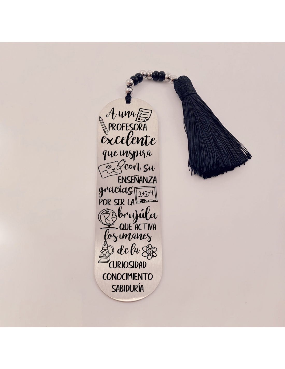 Marca páginas BIMBA, modelo 10, borla de algodón, cristal checo y acero inoxidable.