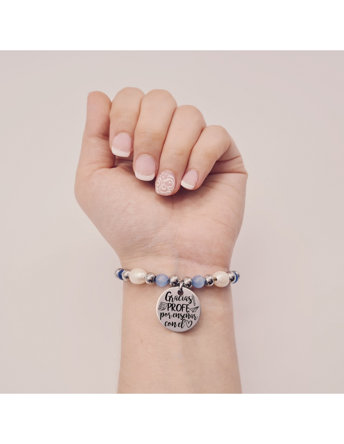Pulsera, modelo BaByBu, (gracias profe, por enseñar con el corazón) acero inoxidable, ajustable.