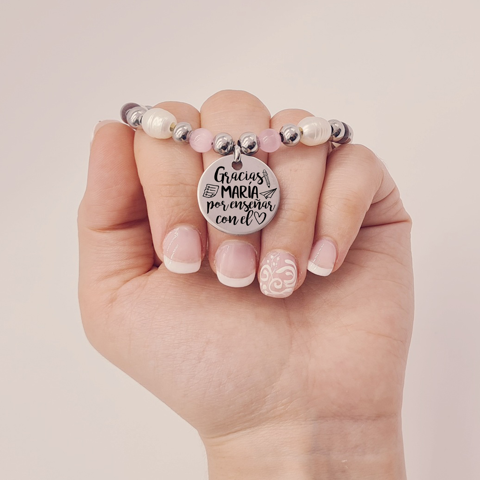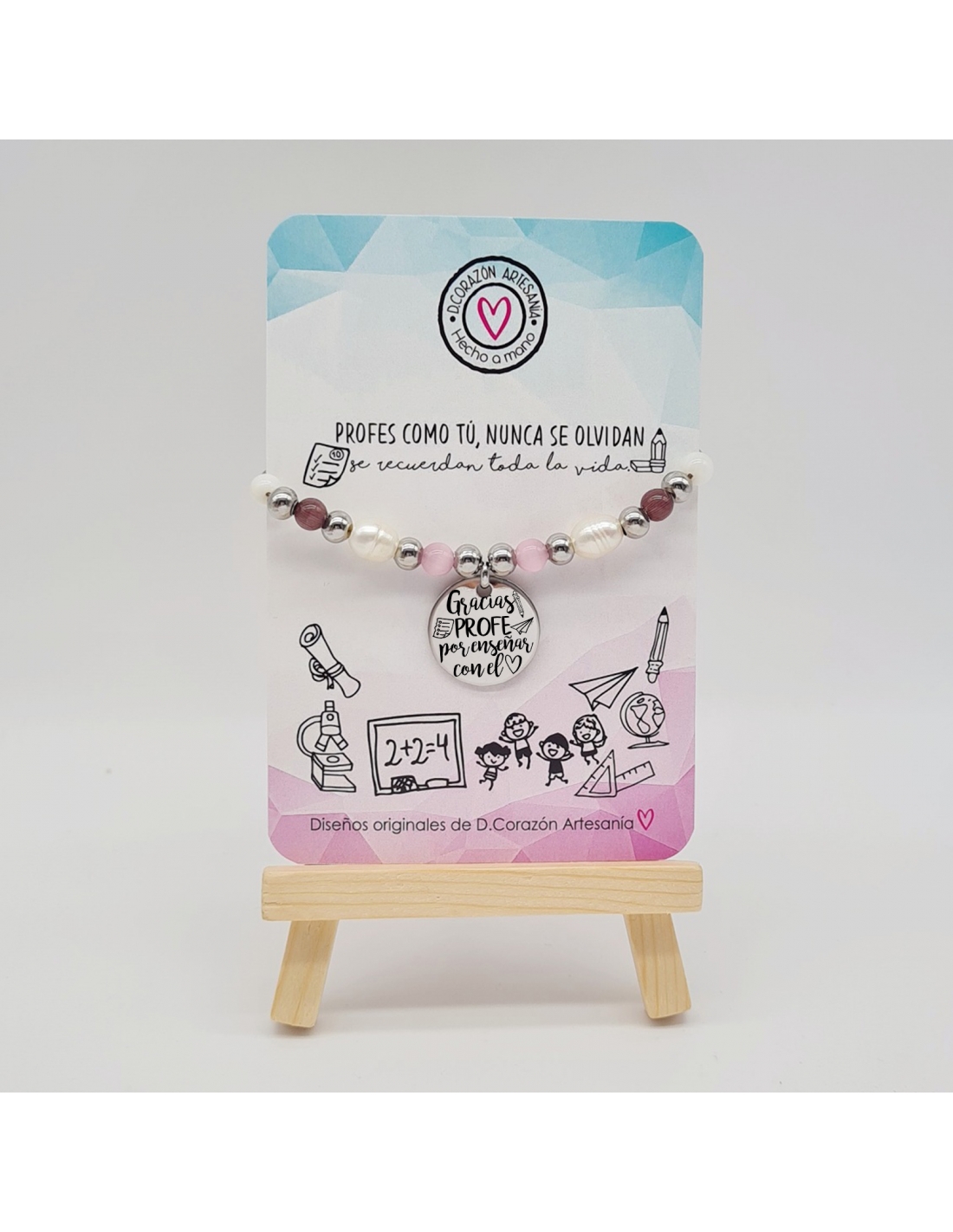 Pulsera, modelo BaByBu, (gracias profe, por enseñar con el corazón) acero inoxidable, ajustable.