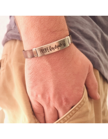 Pulsera de cuero, (profe has dejado huella) modelo JULIUS de acero inoxidable. Ajustable.