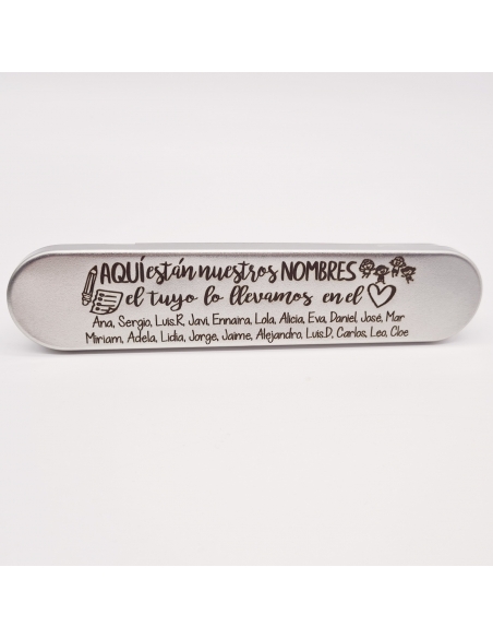 Bolígrafo MODELO LÁSER AQUÍ ESTÁN NUESTROS NOMBRES EL TUYO LO LLEVAMOS EN EL CORAZÓN, caja incluida (1pc).