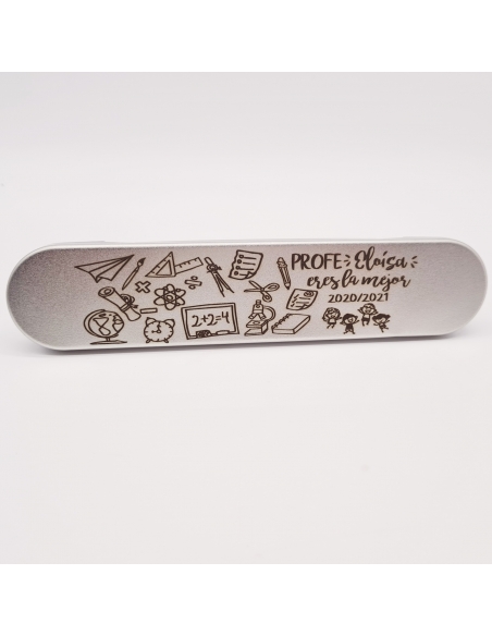 INCLUYE ESTUCHE DE METAL A JUEGO Grabado con el nombre del profesor/ra. Mejor profe o profesora.