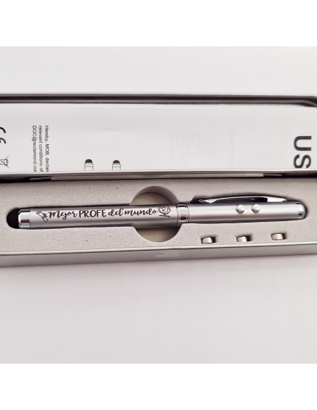 BOLÍGRAFO CON PUNTERO LÁSER, LINTERNA Y ALMOHADA PARA PANTALLA TÁCTIL.