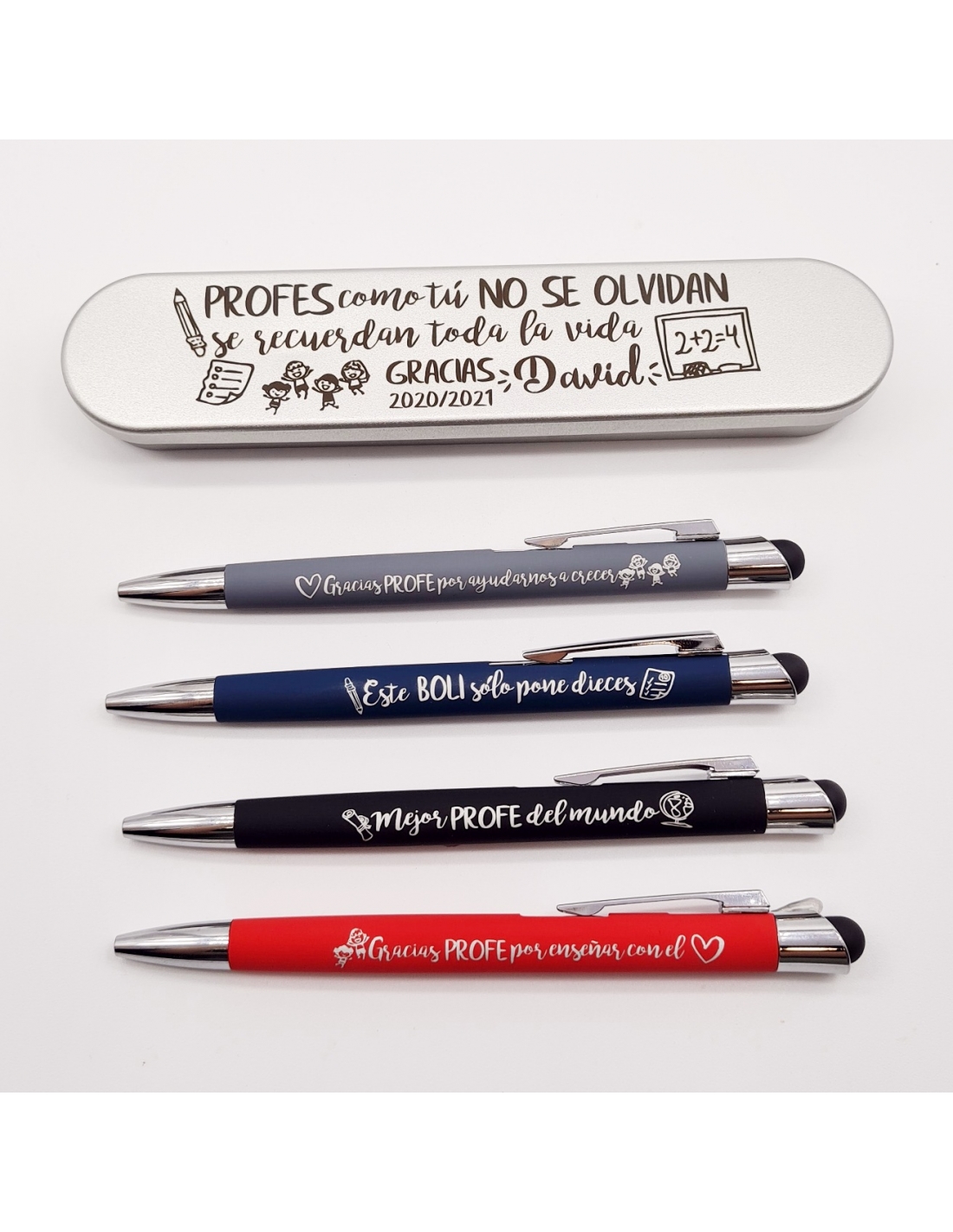 INCLUYE  ESTUCHE DE METAL A JUEGO Grabado. CARCASA Profes como tú, nunca se olvidan, se recuerdan toda la vida.