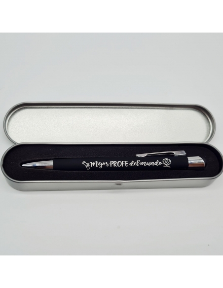 INCLUYE ESTUCHE DE METAL A JUEGO Grabado con el nombre del profesor/ra. Mejor profe o profesora.