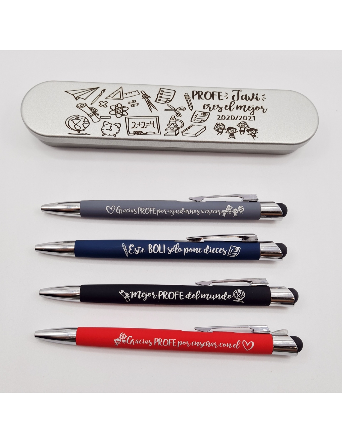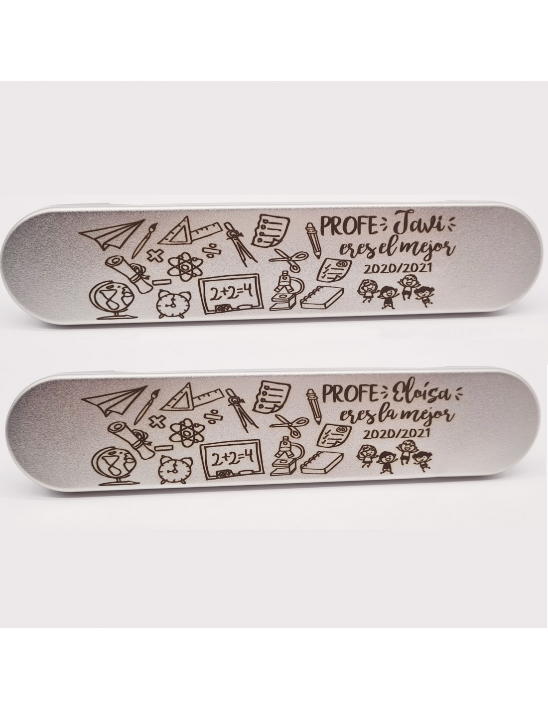INCLUYE ESTUCHE DE METAL A JUEGO Grabado con el nombre del profesor/ra. Mejor profe o profesora.